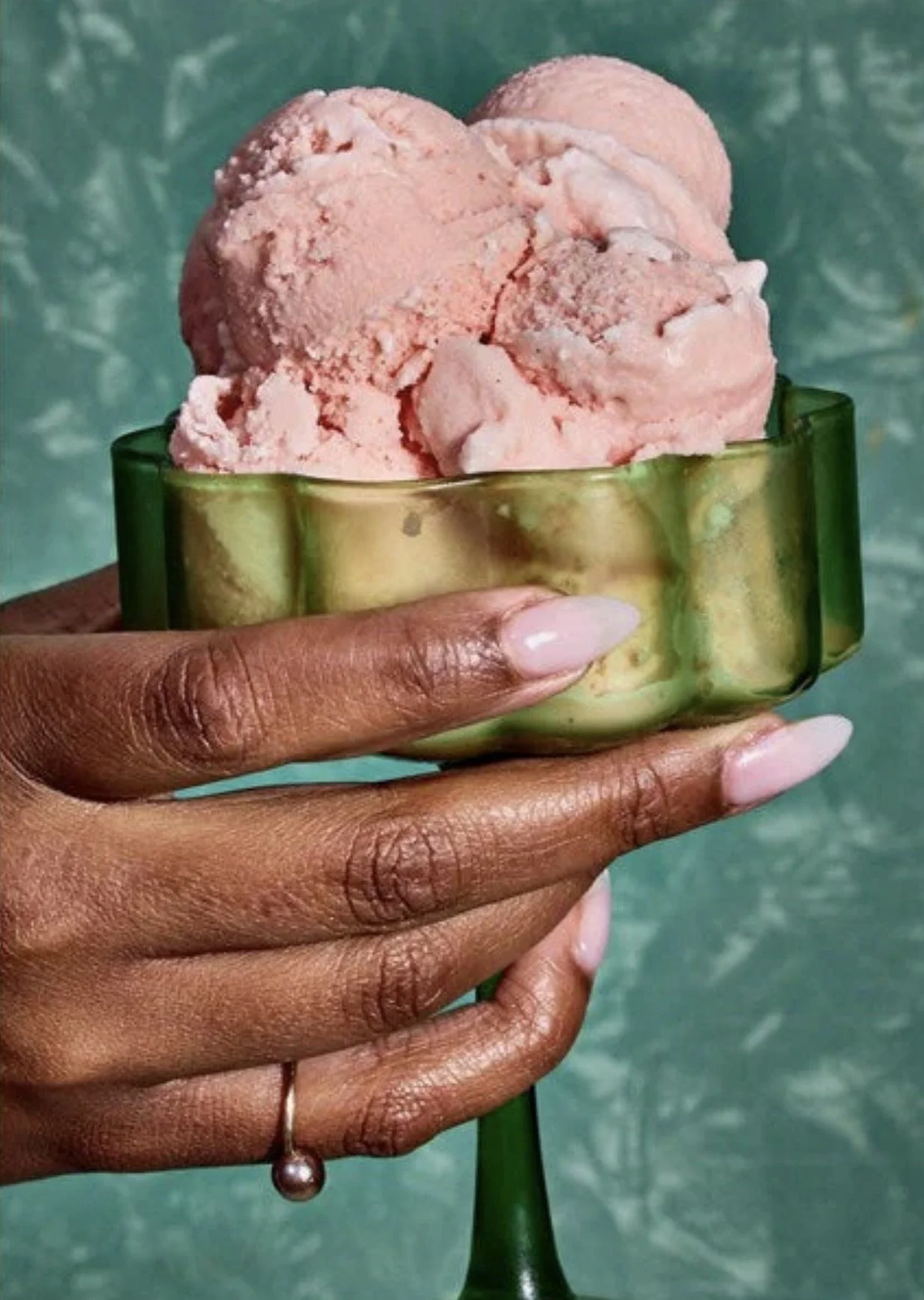 Ice Cream Queen features Alabanza’s original creations and revamped classics such as Malted Vanilla, Roasted Strawberry, and Mint Chip. Building on simple bases, standout flavors range from boozy and fruity to adventurous and decadent. Recipes include Nashville Hot Chicken, an ode to her adoptive city’s iconic dish; Juneteenth Sorbet, with summer-ripe raspberries and hibiscus flowers; PB&J, a vanilla swirled with peanut butter, strawberry jam, and slices of white bread; Chocolate-Covered Kettle Chip, a crunchy mix of sweet and salty . . . and many more.